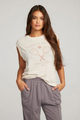 Loungewear Chic: Embrace the sleeveless comfort of this tee with loungewear for a relaxed yet stylish ensemble, perfect for laid-back days.