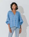Crafted from a blend of organic cotton and FSC-certified viscose, this blouse is not only beautiful but also ethically made in India. The elasticized cuff sleeves add a touch of feminine charm, while the easy-to-wear design makes it perfect for dressing up or down.