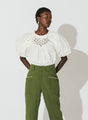 - Puff sleeve with ruffle and elasticized sleeve hem