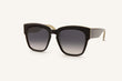 Female model is wearing the "El Salvador" sunglasses in layered sand with double gradient grey lenses.