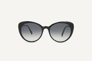 "Zagreb" sunglasses in recycled black with double gradient grey lenses. Zagreb sunglasses are with UV400 ZEISS lenses, nylon coated screws, 5-barrel hinges and made of recycled acetate frame.  "Zagreb" sunglasses are handmade in Italy.  Comes with a soft recycled PET bottle pouch and recycled leather sunglass case.