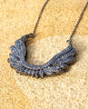 Double Wing Sapphire Necklace. 16 inch oxidize sterling silver chain, it can be adjustable in 18 inch also with 2 inch extension.