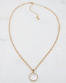 A carved mother of pearl St. Benedict pendant surrounded by pave Cz's on an 18kt gold plated curb chain. Sits 16" with a 3" extension chain.