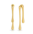 The Darby features a unique double elongated teardrop earring. 18kt gold plated. Front side hangs 45 mm long