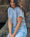 - Relaxed fit tee with a looser crewneck and a straight hem.